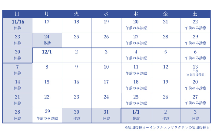 また、休診期間中にお薬がなくなりそうな方はお早めにご相談ください。